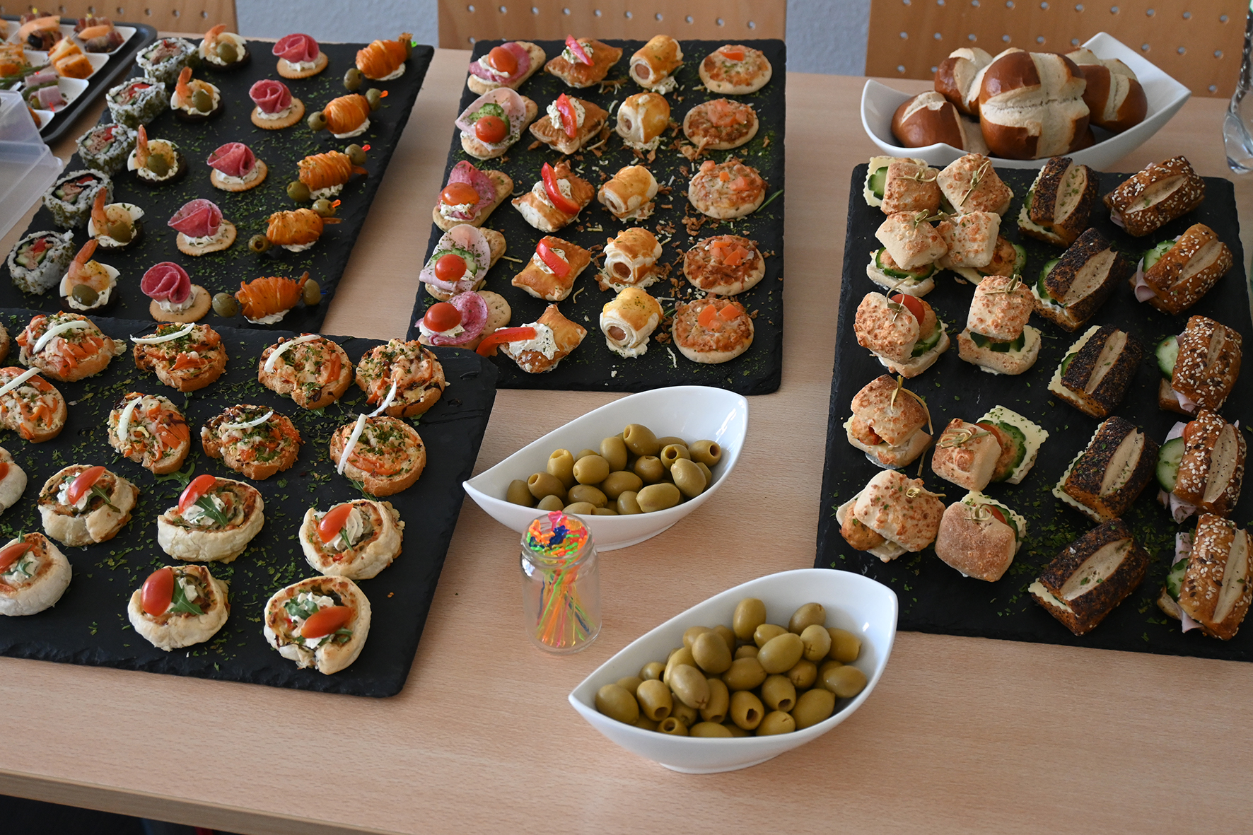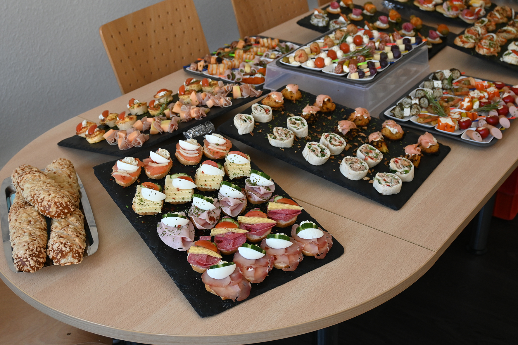 Nach den offiziellen Worten wurde das Büffet eröffnet und alle nutzten die Gelegenheit, in geselliger Runde Erinnerungen auszutauschen und auf die gemeinsame Zeit anzustoßen.