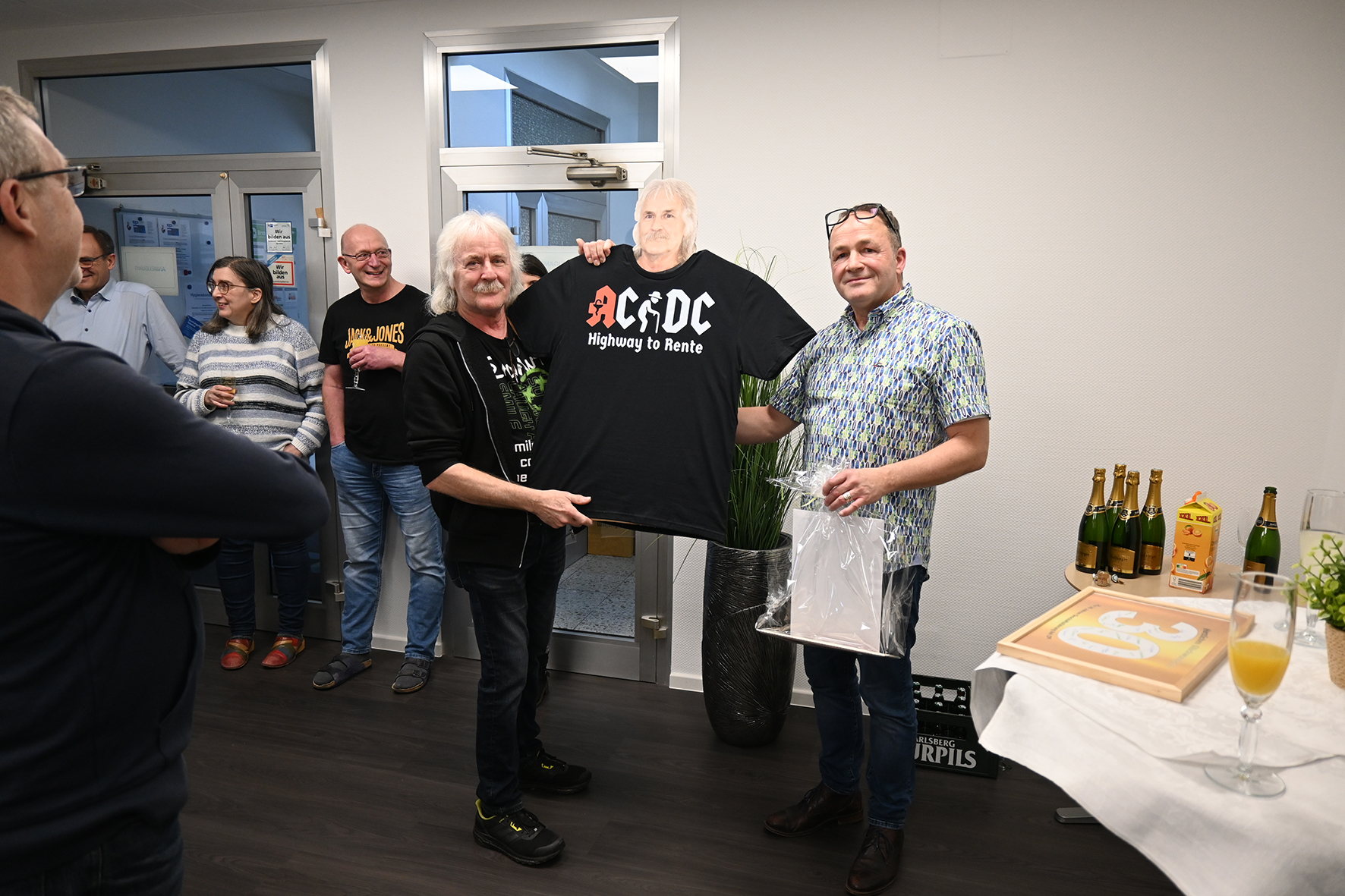 Mit einem Augenzwinkern wurde Alois anschließend ein Geschenk überreicht – ganz im Zeichen seiner Leidenschaft als AC/DC-Fan. Die Überraschung sorgte für große Freude und Applaus.